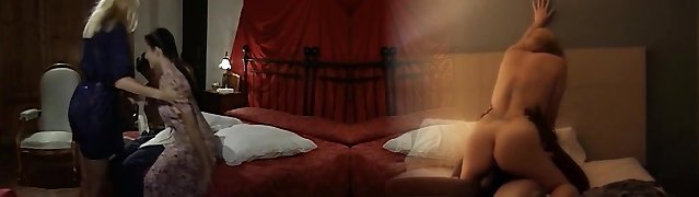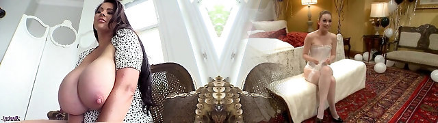 Two beautiful and hot huge-chested milfs in the bedroom want to smash