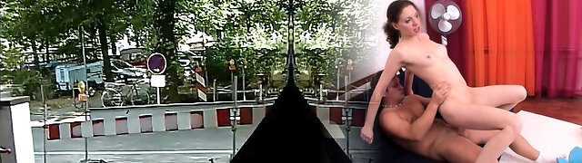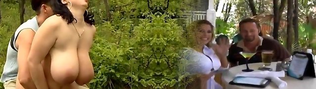 A supah busty German brunette gets her muff hammered outdoors