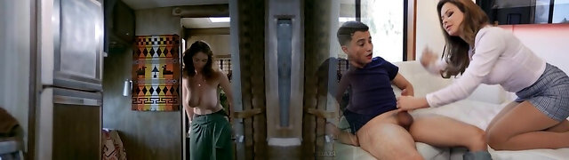 Pallid skin bodacious white brunette on the bed with her lesbian lover