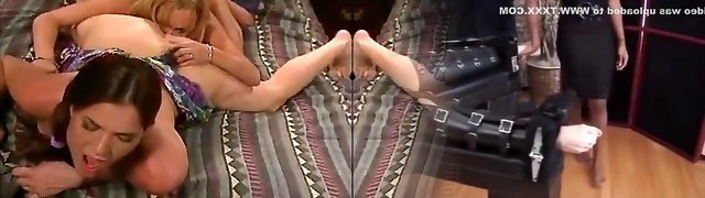 Classic lesbians Ayla and Cherry Rain strap dildo sex after oral