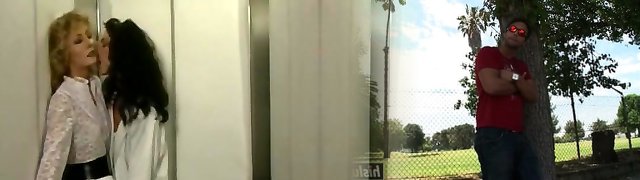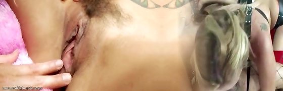 Two lesbians Cathy Stewart, Diane Dubois fondle each other and pummel cunts with toys