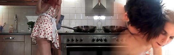 Sweet and marvelous redhead milf in white undergarments senses hunger for dick