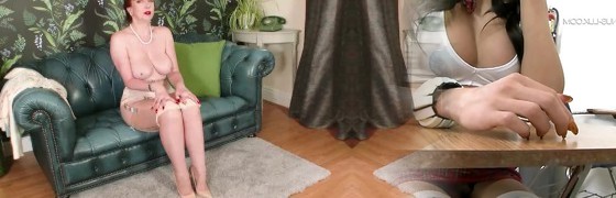 Redhead Milf wanks in retro chic lingerie seamed nylon designer heels