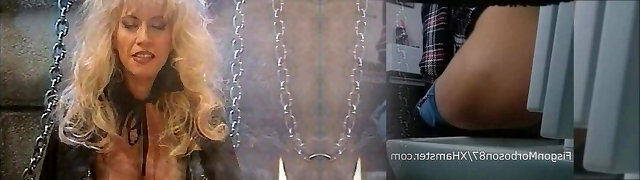 Home alone vintage platinum-blonde plays with her enormous dildo