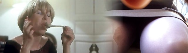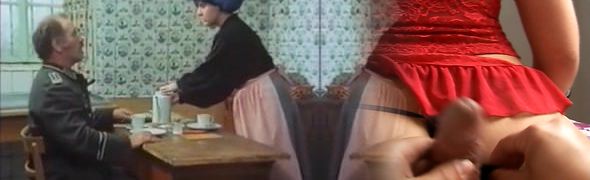 Stockings wearing mega-slut from Germany gets her mouth crammed with cum