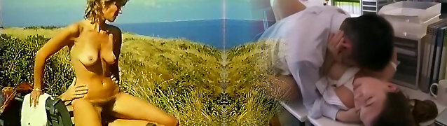 Light-haired hottie gets fucked from behind in a forest in retro vid