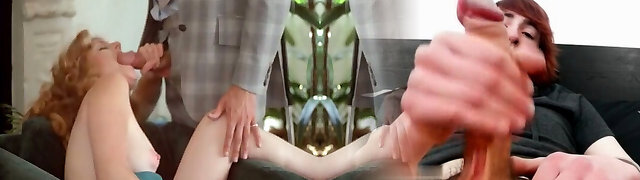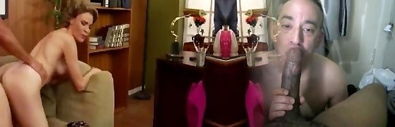 Super-steamy redhead and blonde white milfs give double blowjob