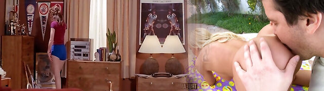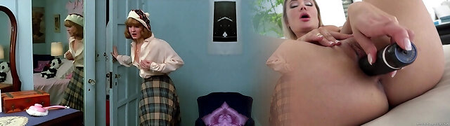 Blonde hottie and sexy red-haired housemaid get into lesbian action