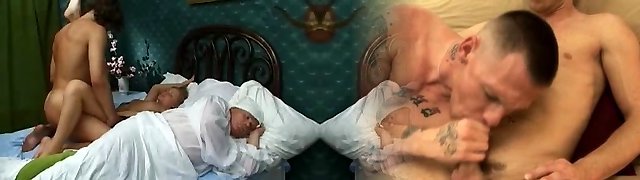 Russian stepmom Casca Akashova gives a suck off and boob job early in the morning
