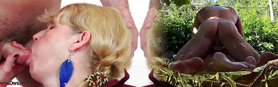 Outdoor threesome for the hairy horny and ready for fuck granny