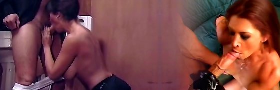 seducing plumber while her hubby in the bathroom!