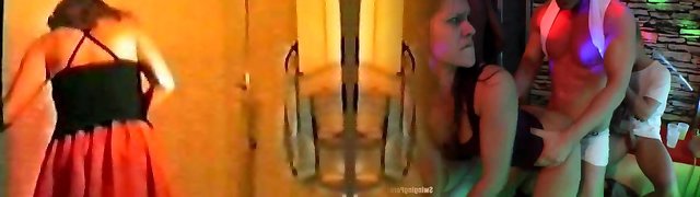 Three horny and hot white sluts sharing one man in the bath