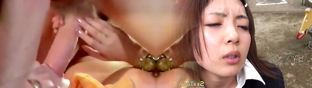 Japanese lesbians and a big dildo salami