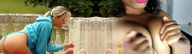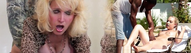 Gorgeous blondie milf with sunglasses feels horny for a young country girl