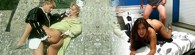 Horny lord catches and massages super-fucking-hot blonde lady in his castle