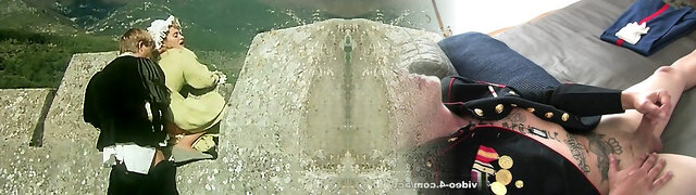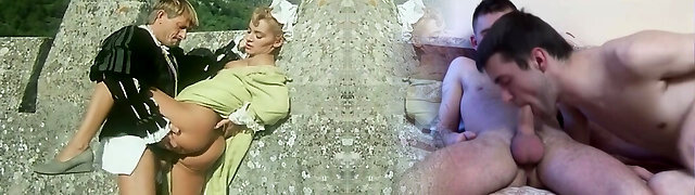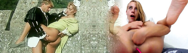 Horny lord catches and kneads red-hot blonde lady in his castle