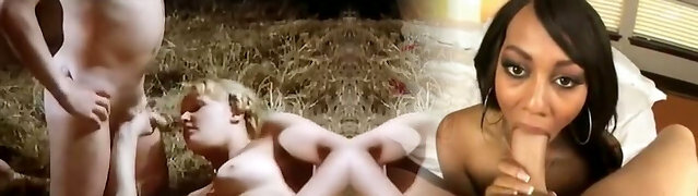 Gorgeous blonde stunners sensually inhale one big cock on the couch