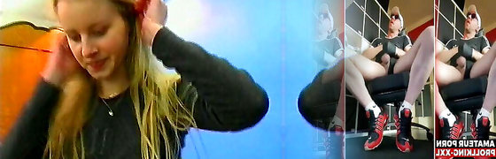 Blondes Girl Solo Mit Fuck Stick und Vibrator