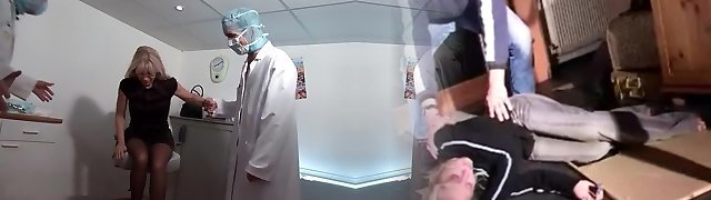 Crazy whore in green stockings gets her fuckbox fisted in the clinic