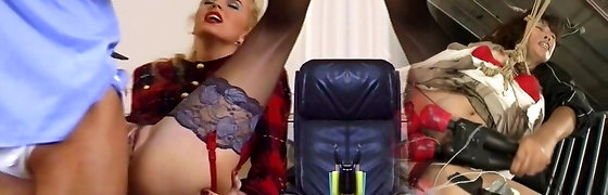 Dirty blonde masturbates in vintage dark-skinned nylons stilettos