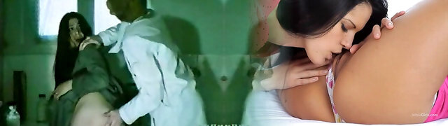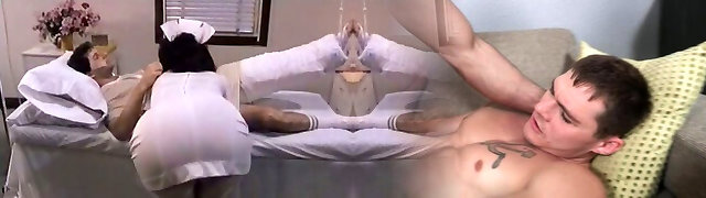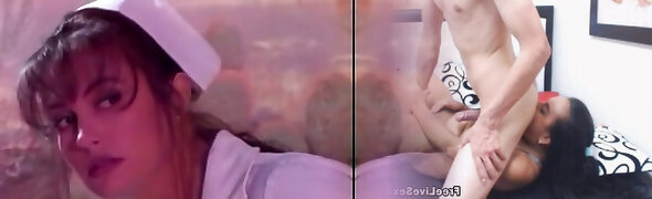 Beautiful sex addicted black-haired nurse having interracial threesome