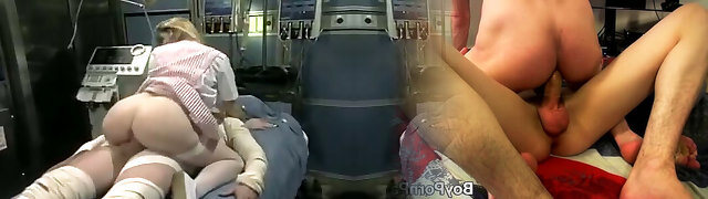 Dirty-minded extremely bootylicious blonde nurse sucks and rides man rod