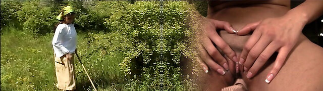 He takes a granny out into the forest and fucks her vintage slit