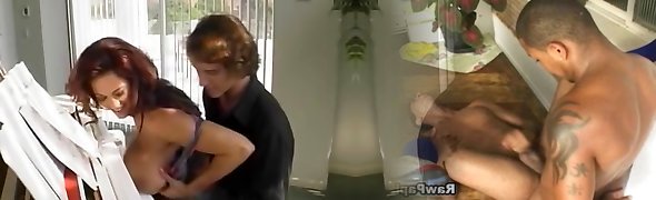 Red head bbw takes two big cocks outdoor